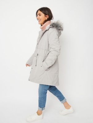 Silver Faux Fur Trim Borg Lined Parka Women George